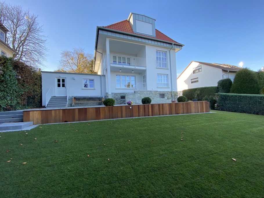 - Kernsanierung eines Altbaus mit Ausbau des Dachgeschosses zu Wohnzwecken sowie gartenseitigen Anbau in Hanglage